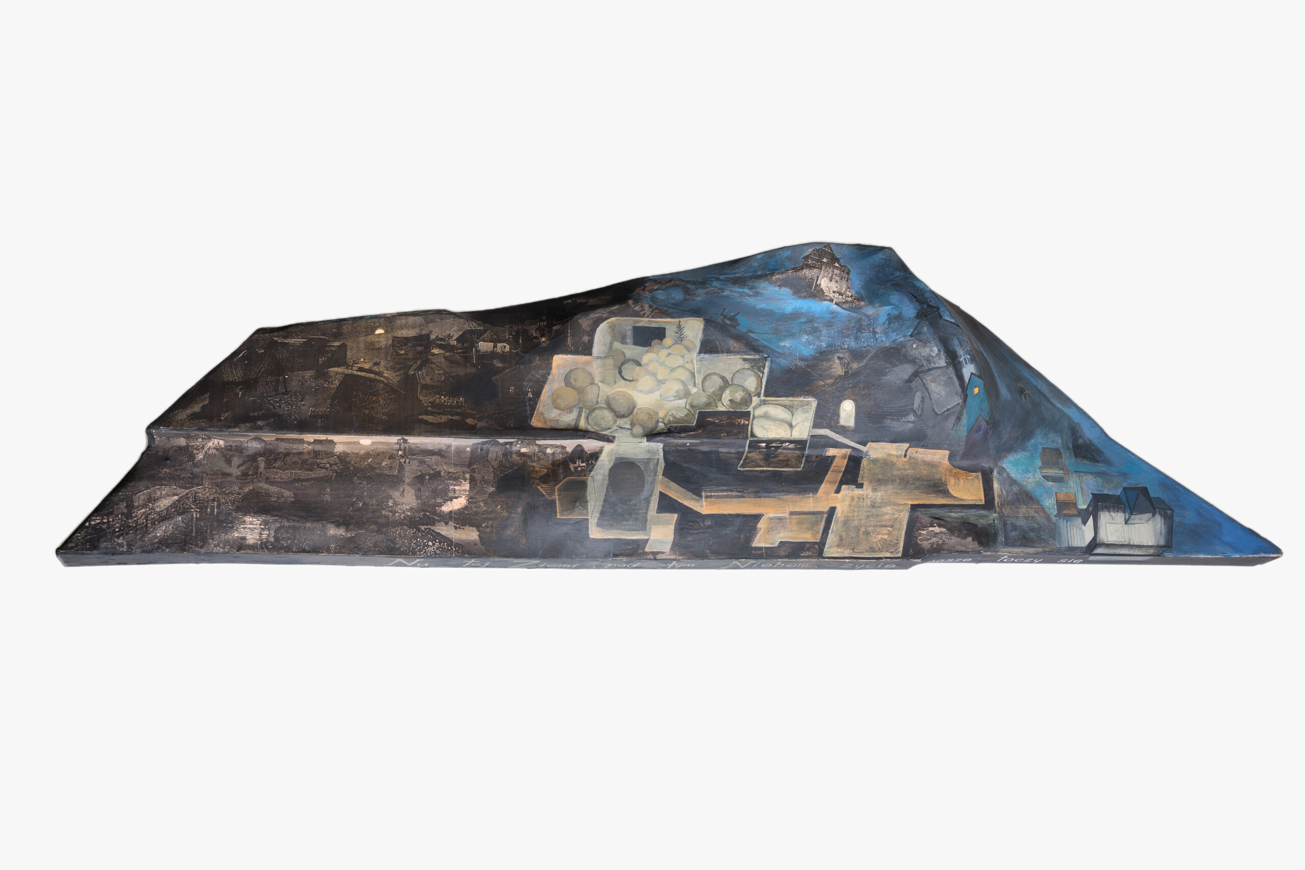 Evening Prayers to dyptyk obiektów malarskich, zatytułowanych Notice me senpai oraz Klin. Wymiary górnego obiektu to 65 × 70 × 110 cm, a dolnego – 150 x 44 x 35 cm.